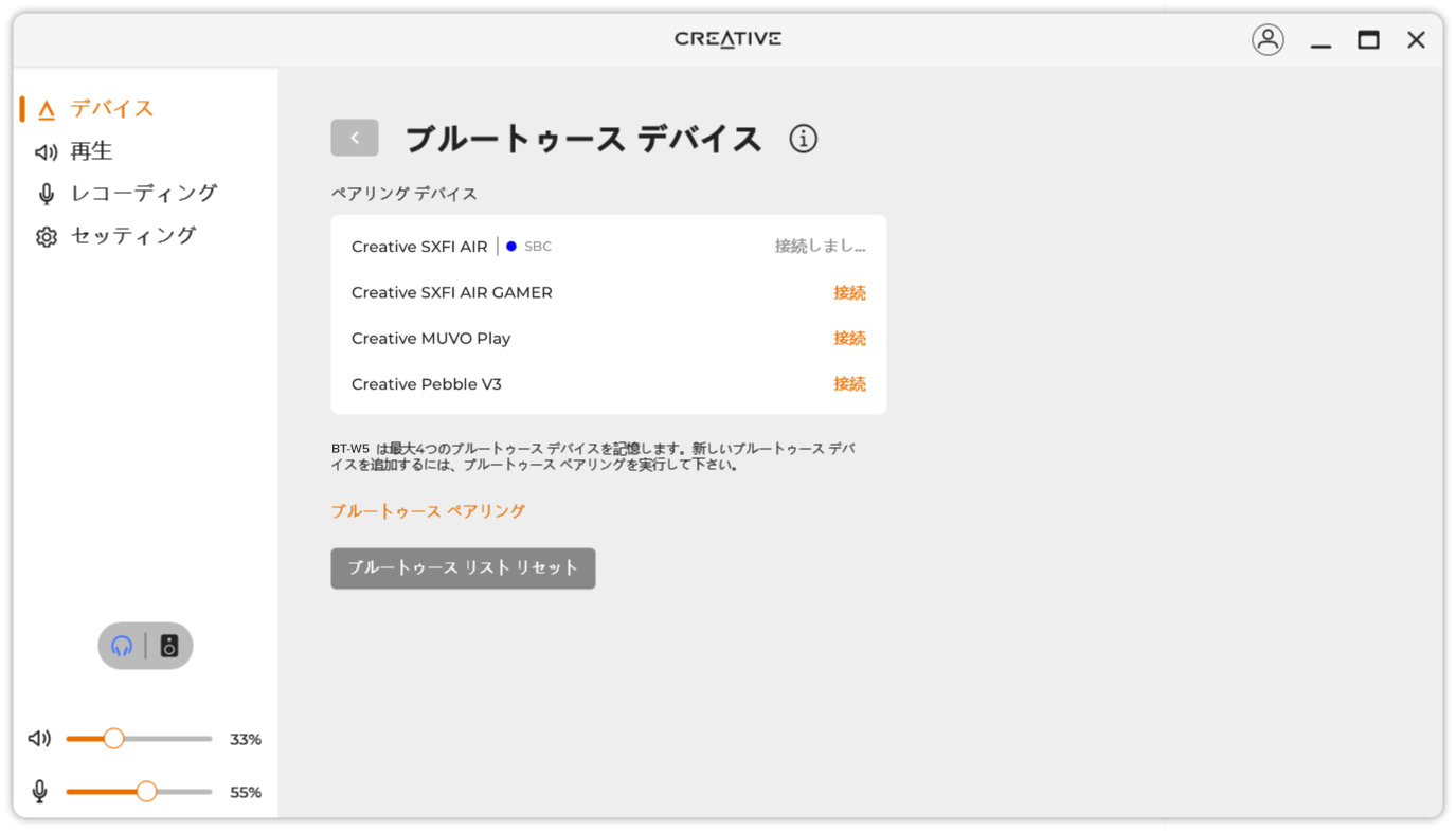 Bluetoothオーディオ機器をペアリングした順番が判らなくても、Creative アプリを使用すればPC/Macから接続するBluetooth機器を切り替える事ができます。