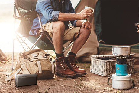 iRoar Goは外殻に防水ケーシングを採用。IPX6相当の防水性能※1を備えており、水辺でのレジャーや浴室、キッチンなどの水回り、水濡れを気にせずに持ち歩いてお使い頂けます。