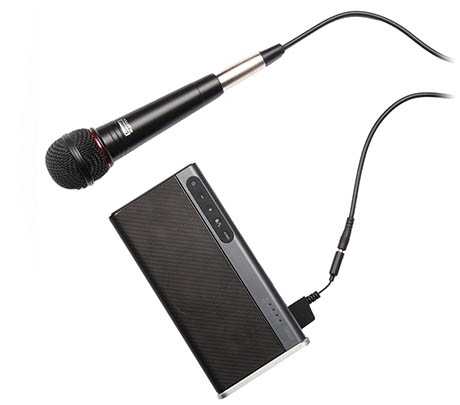 付属のマイクアダプターケーブルを介して、コンデンサマイク※9またはダイナミックマイク※9の接続が可能。市販のハンドマイクやハンズフリーマイクを接続※4すれば、iRoar Goを「パーソナルなPA(拡声)装置」として使用することが可能です。