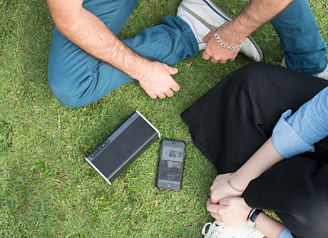最新テクノロジーの1つであるNFC(Near Field Communication)機能を採用しており、対応するNFC搭載のスマートフォンやタブレット等のBluetoothデバイスと、ワンタッチでペアリングや接続の操作※13をすることが可能、簡単にワイヤレスでの音楽再生※14をお楽しみ頂けます。