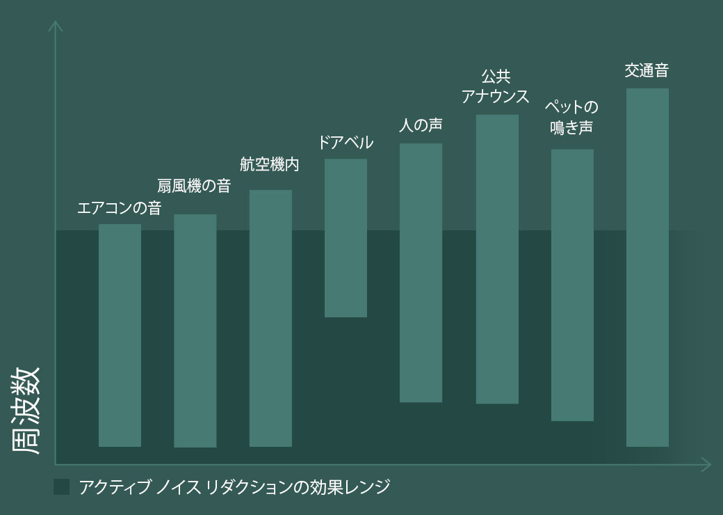 ノイズ コントロールのアクティブ ノイズ リダクションは、それぞれのイヤホンに搭載されているフィードフォワード マイクによって外部のノイズ音を低減します。