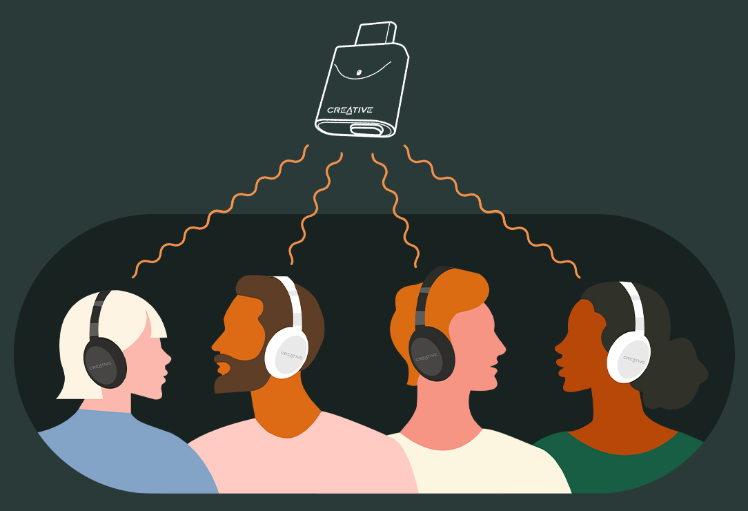 ブロードキャスト モードでは、サポートされている複数のオーディオ デバイスにワイヤレスでオーディオをブロードキャスト※3できます。