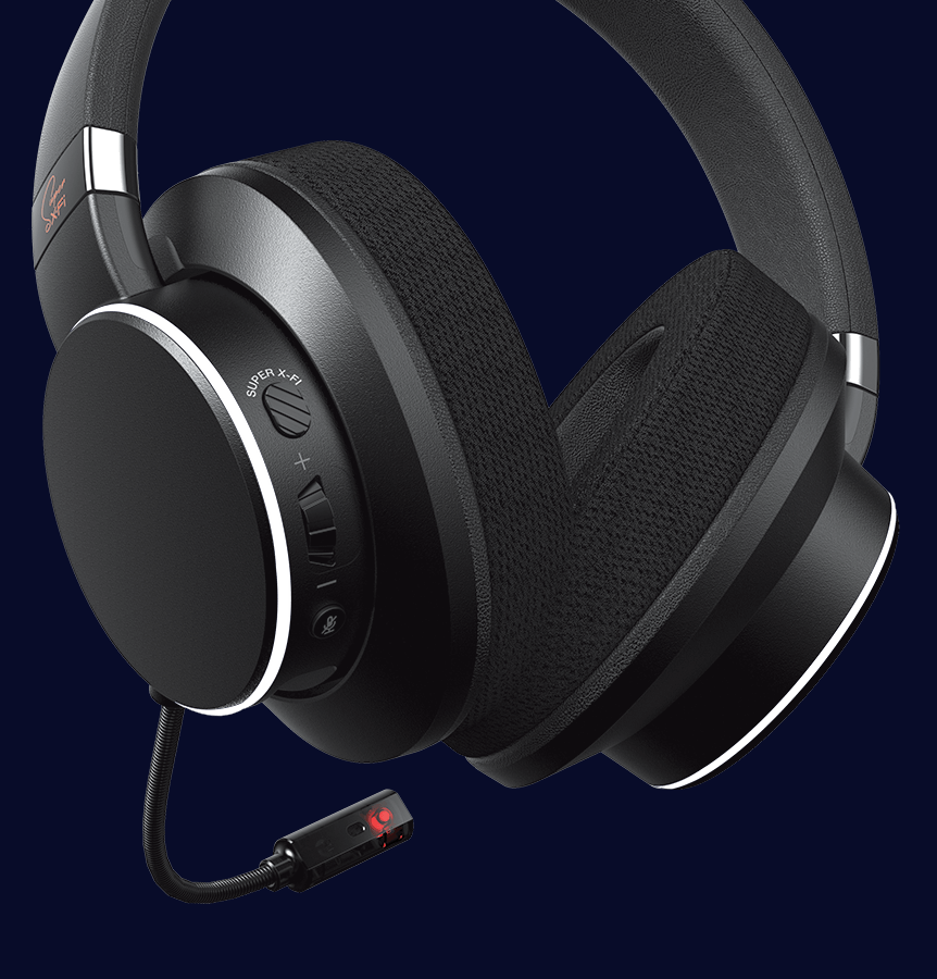 Creative SXFI AIR Cは、自然なリスニング体験が行えるようにヘッドホンのオーディオ体験をパーソナライズされたホログラフィック オーディオを提供するSuper X-Fi技術を内蔵したUSB接続ヘッドホンです。