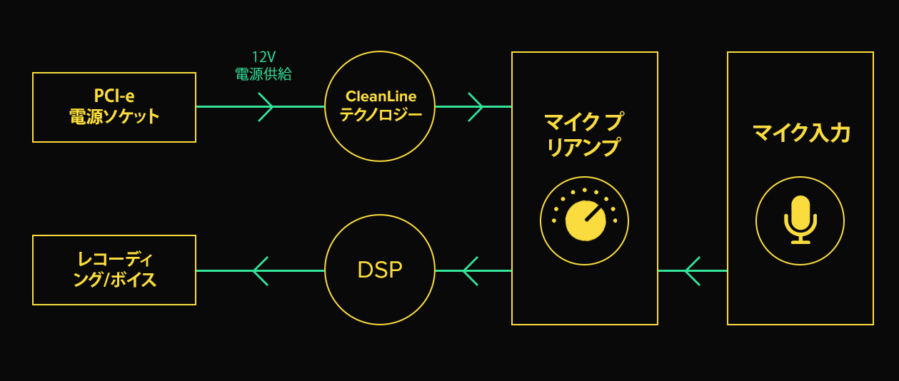 CleanLine テクノロジーは、昨今の高性能GPUやグラフィック ボードから発生する電源リップル ノイズの影響を低減する技術です。