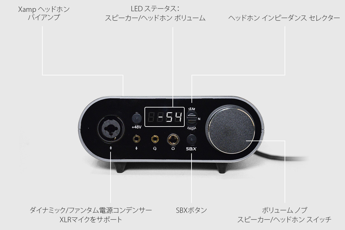 各オーディオ チャンネルを個別に増幅し、左右のヘッドホン ドライバーに純粋なオーディオをロスなくお届けする、フル ディスクリートのXamp ヘッドホン バイアンプを備えており、その1Ωという低ヘッドホン出力インピーダンスによって、高感度なインイヤーモニターから600Ωまでのオーディオファイル グレードのヘッドホンまで、様々なヘッドホンに対応します。
