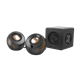 Creative Pebble X Plusは、プロダクト アワードや数々のベストバイの受賞歴を誇るPebble シリーズの特徴であるドライバーを45°の上向きに配置した球形状のスピーカー デザインやUSB電源での利便性はそのままに、デュアル パッシブ ラジエーターを備えた新開発のコンパクト サブウーファーと、2.75インチにサイズアップしたカスタムチューン ドライバーを搭載するサテライト スピーカーを採用し、オーディオ パフォーマンスをさらにアップグレードした省スペース2.1chデザインのスピーカーです。