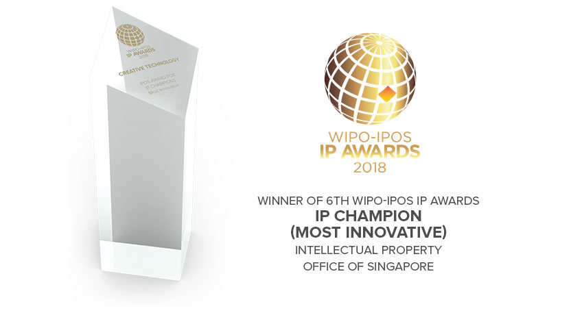 IP Champions - MOST INNOVATIVEは、Creativeの独創的な新製品やサービス、ソリューションの創造 - 特にヘッドホン業界に変革をもたらすSuper X-Fi技術に授与されました。IPOSはシンガポールの知的財産局です。