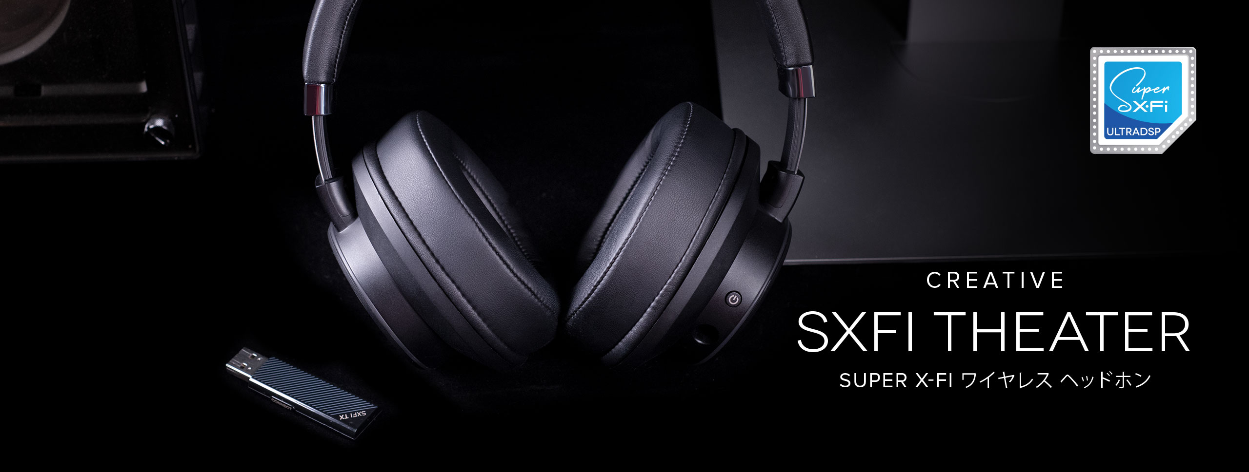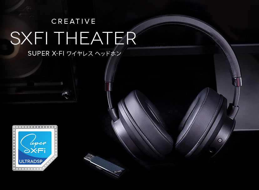 Creative SXFI THEATERは、低遅延・高音質の独自方式2.4GHzデジタル ワイヤレスを採用したSuper X-Fi搭載USBワイヤレス ヘッドホンです。PCおよびMacとUSB接続した場合は、5.1または7.1オーディオとして動作、マルチチャンネル コンテンツをSuper-X-Fiでお楽しみ頂けます。