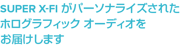 Super X-Fiでは、ヘッドホンを付けていないかのような自然な音で聴こえます。この驚異的な技術は音響マッピングとホログラッフィック サウンドによって、サラウンド スピーカーのようなヘッドホン体験を生み出します。