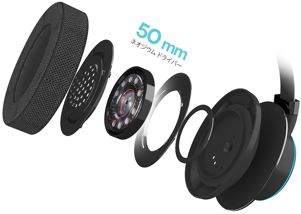 50mmの大型ドライバーを採用したオーバーイヤー タイプの高性能ヘッドホンであり、最適なSuper X-Fiが体験できるようにチューニングされています。